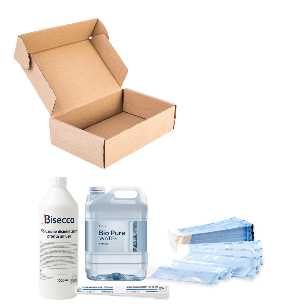 Il nostro Starter STERI KIT è stato creato per offrirti la massima qualità e praticità, assicurando un avvio immediato ed efficace della tua autoclave.